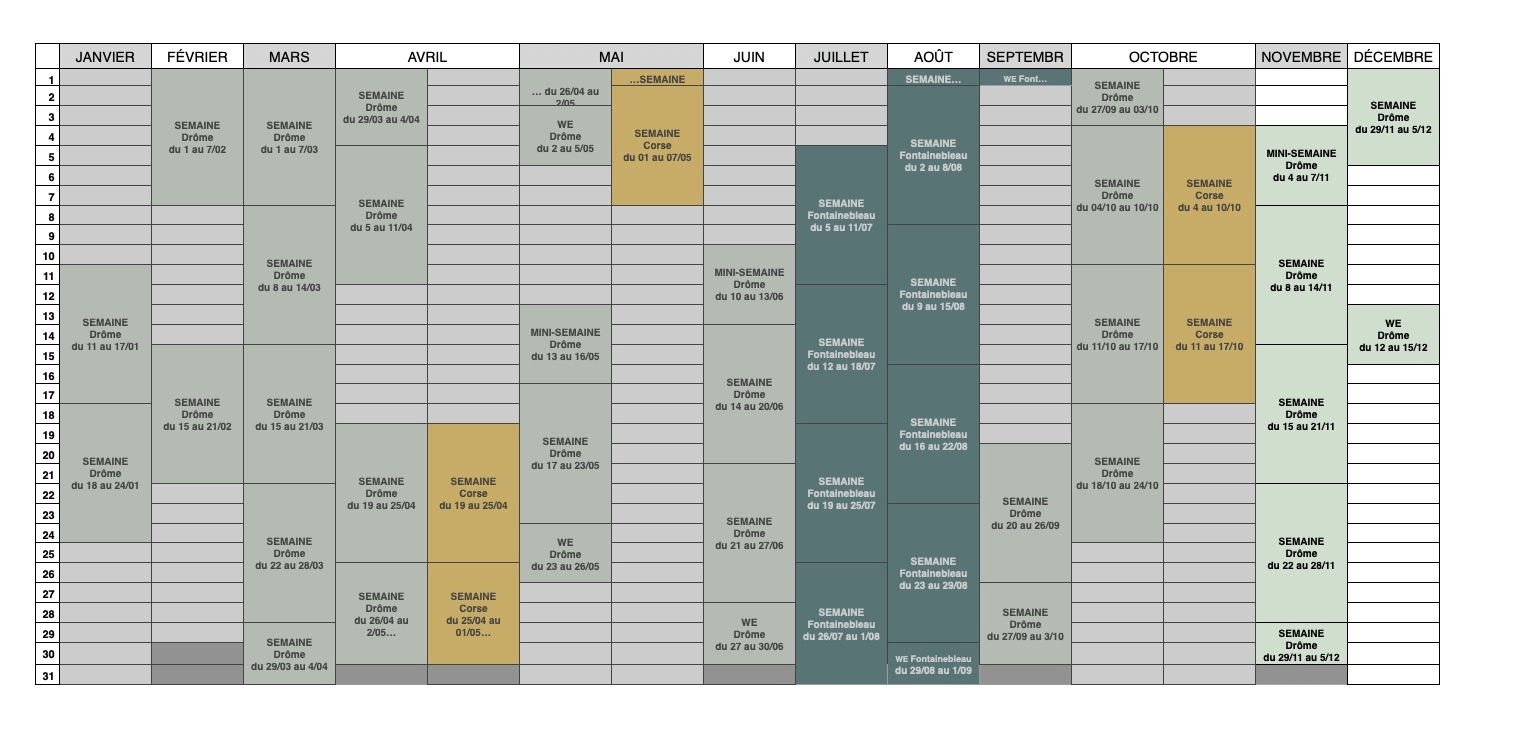 Dès que les dates sont disponibles, elles sont publiées sur notre site Internet. Pour être informé(e) au plus tôt de la parution du calendrier des séjours de l’année suivante, nous vous invitons à vous abonner à notre newsletter. Si vous êtes intéressé(e) par un séjour en particulier, vous pouvez nous le signaler par courriel et nous vous contacterons.